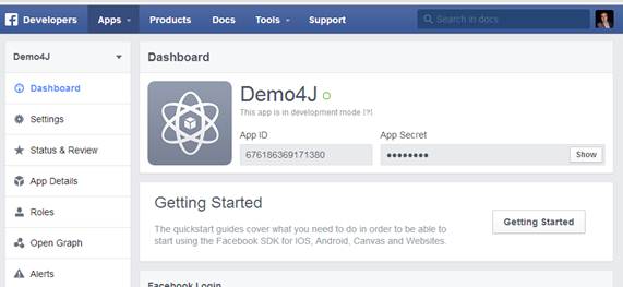 En la página principal de Dashboard ya veo mi App ID y mi App Secret que es la información que necesitaré para conectar vía Facebook:
