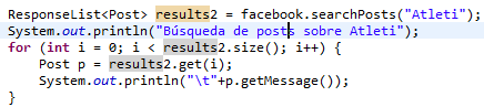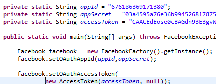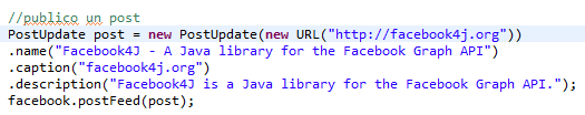 En los ejemplos de Facebook4J podéis encontrar mucha más información: http://facebook4j.org/en/code-examples.html