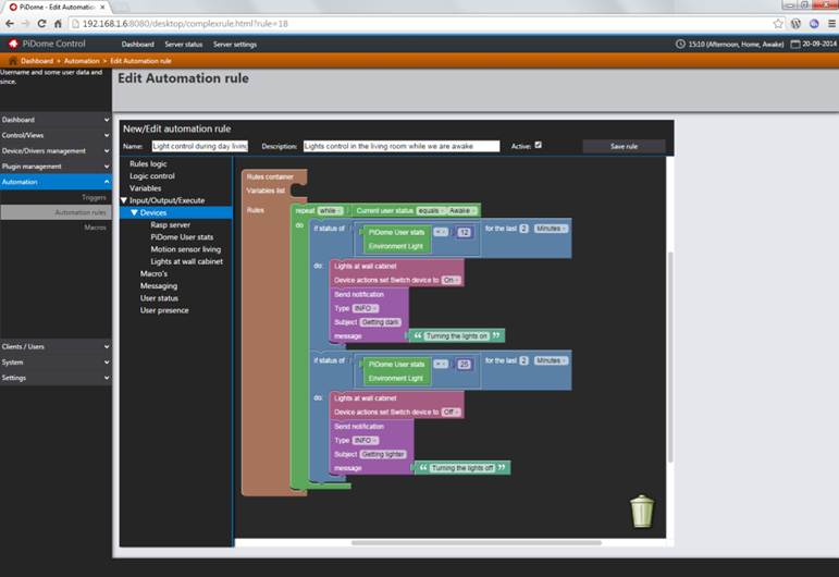 Para usuarios finales PiDome ofrece un entorno controlador en el que se puede conectar cada componente y dispositivo y para desarrolladores ofrece un API para programar el HW en Java o usar un editor para crear dispositivos.