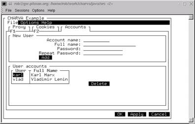 CHARVAes un framework Java para presenter un interfaz de Usuario “gráfico” compuesto de menús, ventanas, diálogos, botones,… sobre un terminal ASCCI.