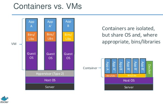 A diferencia de otras herramientas como Chef o Ansible las imágenes contienen el OS separado del OS del host, de modo que los upgrades del sistema no afectan a la aplicación.