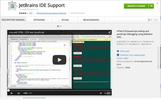 Ya he hecho una prueba básica…he importado unos HTMLs + JS que tenía en mi local (y no precisamente sencillos), he puesto a depurar el proyecto, me ha pedido instalar el JetBrains IDE Support: