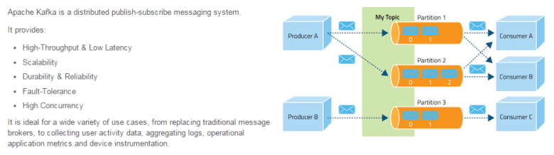 Kafka es un sistema de mensajería Publish-Subscribe de alto rendimiento, escalable y tolerante a fallos diseñado para ingestar datos a gran velocidad.
