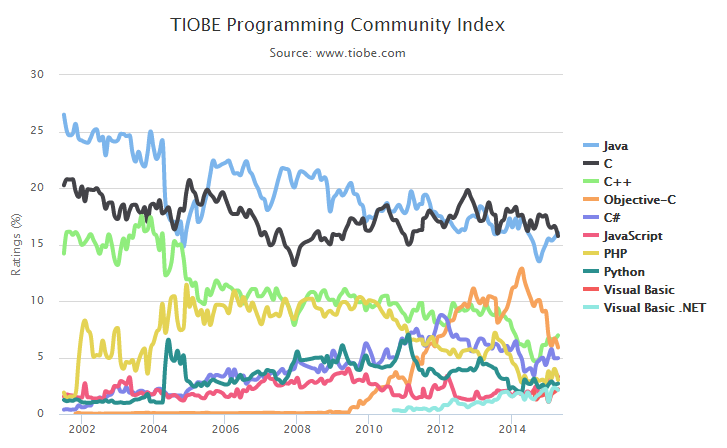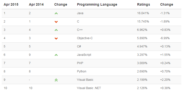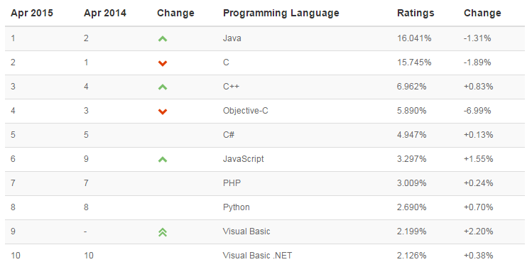 Tras bastantes meses en segunda posición tras el lenguaje C, desde abril Java vuelve a ocupar la primera posición del índice TIOBE: