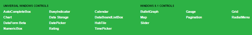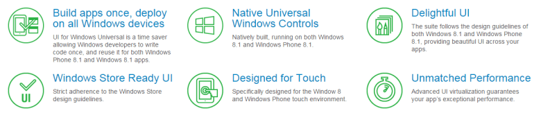 UI for Windows Universal es un producto de Telerik que forma el primer conjunto de controles UI nativos para construer aplicaciones Windows universales.
