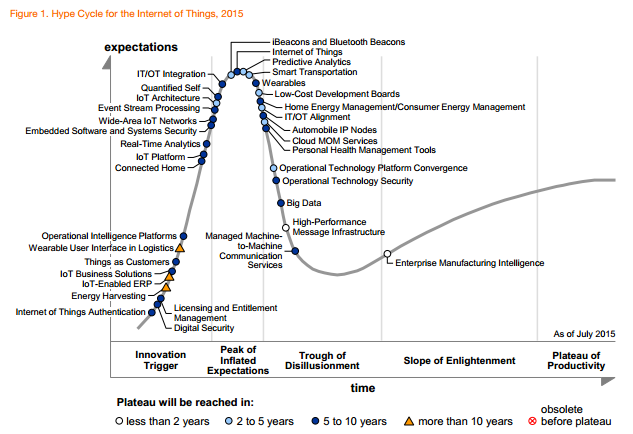 Gartner ha publicado ya su Hype Cycle 2015 para Internet of Things: