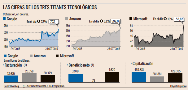 En este artículo de Expansión podéis leer como tanto Amazon como Microsoft superan las expectativas de mercado: