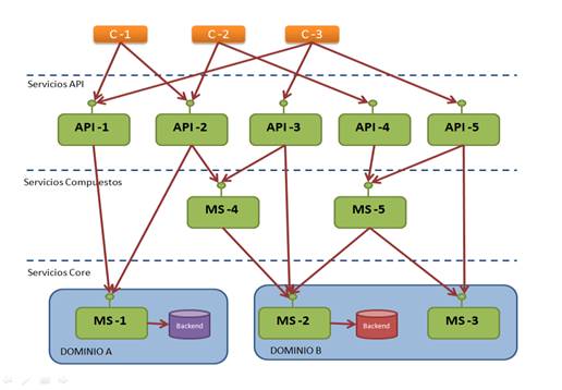 - Esto lleva a un paisaje en el que la mayoría de los microservicios están interconectados entre ellos.