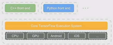 El core de Tensorflow está escrito en C++, ofrece librerías en Python y C++ y puede correr sobre CPU, GPU, en Linux y Mac, además de en Android e iOS.