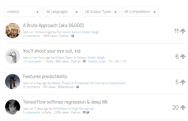 Además Kaggle constituye un importante punto de encuentro entre los expertos en diferentes áreas, y podéis encontrar ejemplos y scripts como estos: