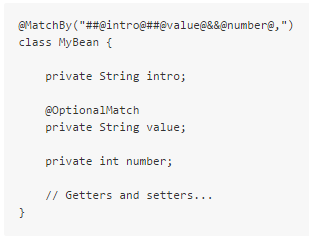 Con la anotación @MatchBy asociamos cómo mapeo las propiedades de nuestro Bean desde el fichero