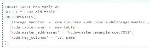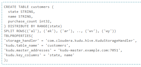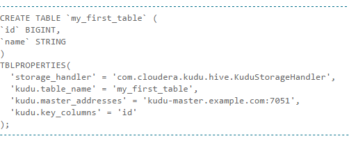 En GitHub tenemos un proyecto con ejemplos de uso de Kudu en Java, C++ y Python, como este, aunque sin duda lo más interesante es poder usarlo desde Impala como podemos ver aquí: