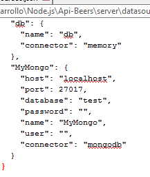 Al acabar el comando puedo ir al fichero server/datasources.json y revisar la configuración:
