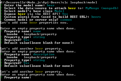 Me pedirá un nombre para mi aplicación, elegiré Api-Beers (me creará este directorio sobre el directorio actual) y: