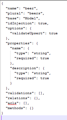 En common/models/beer.json podemos ver la definición del modelo: