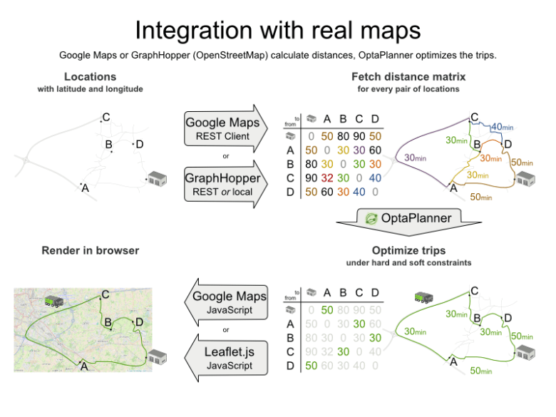 Veamos cómo funciona el ejemplo de determinación del orden óptimo para repartir un número de pedidos a un número de localizaciones con una flota de vehículos:
