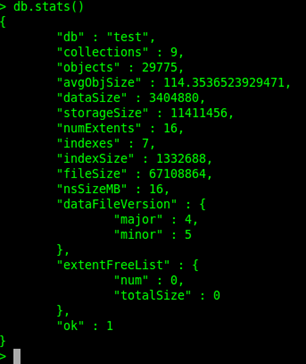 · storageSize muestra el tamaño de los datos más el espacio sin usar