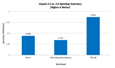 En este artículo podéis ver como la versión 2.5 de Impala es capaz de mejorar hasta x4 comparando con la versión 2.3: