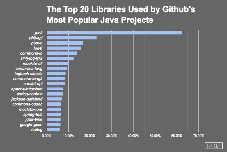 En las 20 librerías más usadas JUnit sigue siendo la primera: