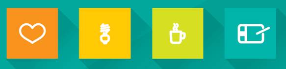 · Color: El color es un componente clave en todo diseño: Utiliza colores brillantes y que contrasten, eEl número de colores a usar en una interfaz flat design suele ser reducido y acostumbra a usarse el mismo tono con diferentes saturaciones con el fin de crear contrastes entre las imágenes, el texto y el fondo.