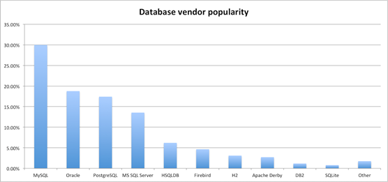 Bases de Datos relacionales más usadas desde JVM (2016)