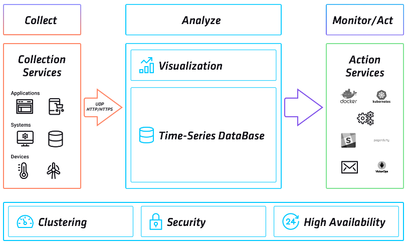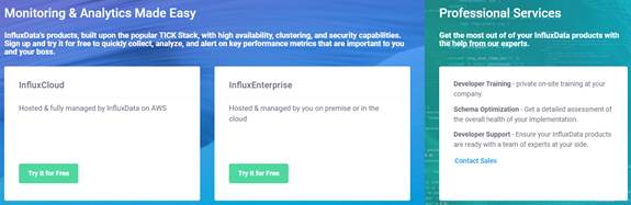 Actualmente InfluxData ofrece una complete plataforma open-source para trabajar con datos tiem-series, incluyendo la recolección, almacenamiento, visualización y procesamiento.