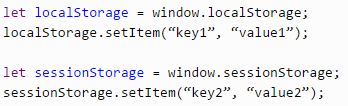 · sessionStorage que mantiene un área de almacenamiento para cada origen y está disponible durante la duración de la session de la página. Disponible vía window.sessionStorage
