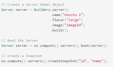 - Orchestration (Heat) Service: permite orquestar aplicaciones. OpenStack4J permite controlar Stacks, Templates, Resources y Events.