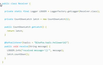 El proyecto Spring for Apache Kafka (spring-kafka) permite seguir el modelo Spring para el desarrollo de soluciones de mensajería basadas en Kafka, proveindo un template como abstracción para enviar mensajes y soporte Message-driven POJOs con @KafkaListener.