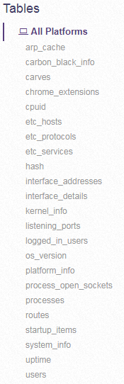 Osquery exporta esta información como un conjunto de tablas SQLite: