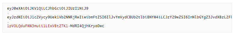 En el ejmplo, la Sección 1 es un encabezado que describe el token. La Sección 2 es el payload, que contiene la petición JWT, y la Sección 3 es el hash de firma que puede usarse para verificar la integridad del token (si tiene la clave secreta que se utilizó para firmarlo).