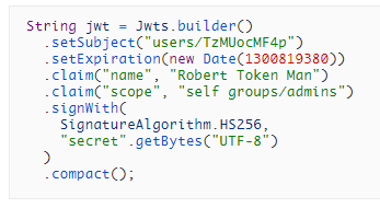 JJWT tiene un interfaz fluido, para crear un JWT seguiré 3 pasos: