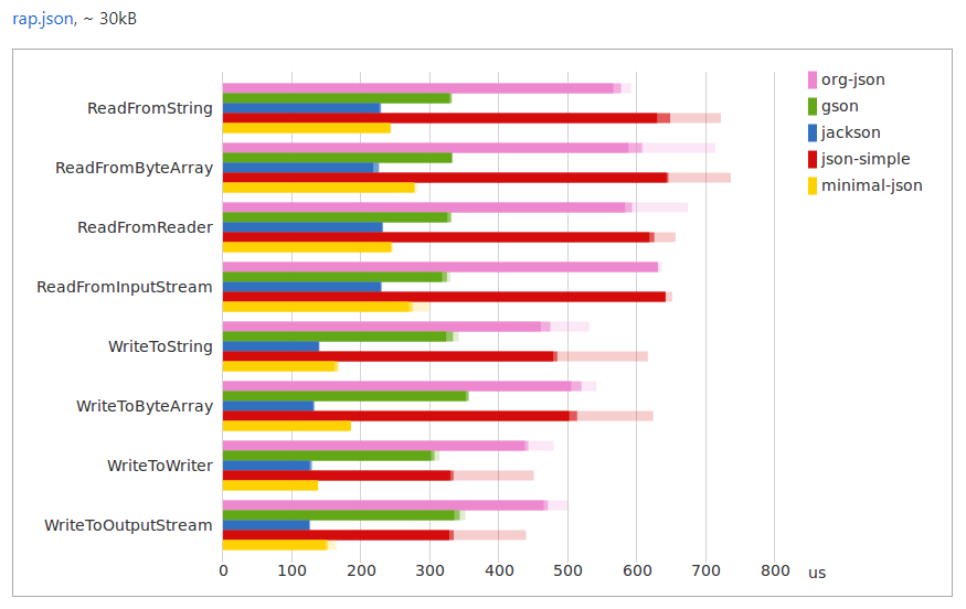 Minimal-json es un parser y writer JSON escrito en Java, que usan proyectos como Hazelcast, jshint-eclipse, Eclipse RAP,…
