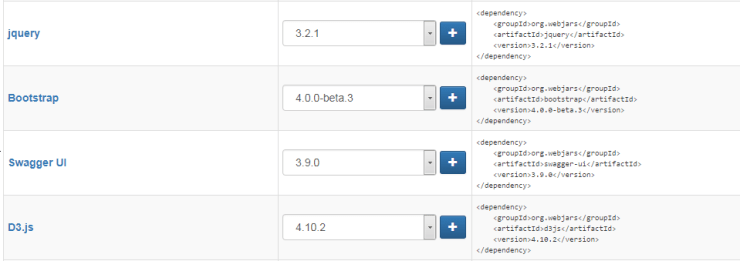 En la web webjars.org podéis encontrar empaquetados webjars de JQuery, Bootstrap, D·, Swagger UI, …