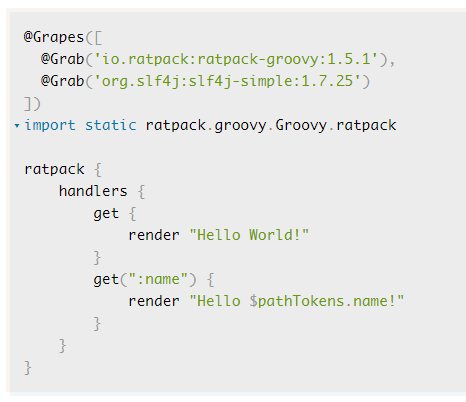 Una forma típica de usarlo es junto a Groovy, de modo que una vez instalado Groovy puedo crear una aplicación Ratpack y ejecutarla con groovy ratpack.groovy