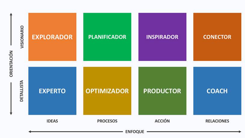 · Orientación: Se refiere al modelo mental en que operas de forma natural. ¿Eres una persona detallista o eres una persona visionaria? Puede ser que tengas un poco de ambos, pero naturalmente tiendes a una de las dos: detallista o visionario.