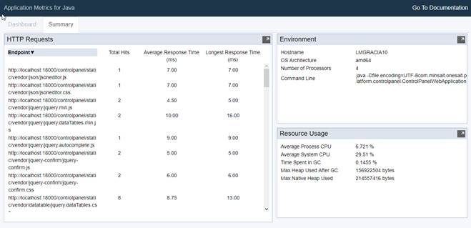 3. Arrancar mi módulo y añadir al final del módulo /javametrics-dash/