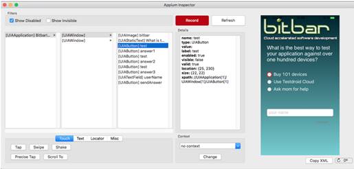 ● Appium proporciona una herramienta complementaria de espionaje de objetos móviles que es útil, pero no tiene una función de iluminación.
