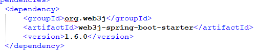 Una vez clonado el Repo puedo fijarme que en el pom.xml tengo la dependencia de web3j para trabajar con Spring Boot: