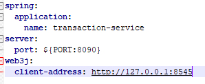 Además, si voy al application.yml (en sample-spring-blockchainsrcmainresources) puedo ver la configuración que tengo de mi cliente Geth: