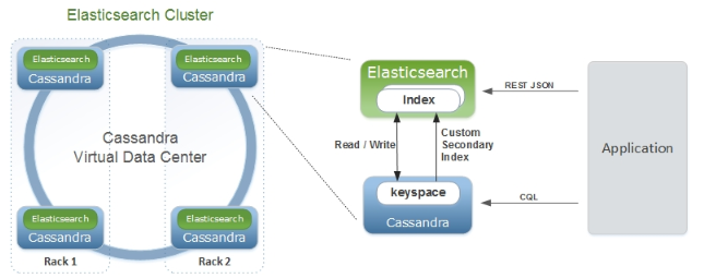 - Con Elassandra, Cassandra puede ser tu único datastore para datos indexados y no indexados. De esta forma se reduce la gestión y la seguridad y los documentos se almacenan en Cassandra reduciendo el espacio en disco.