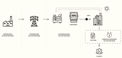 ● Comercialización de electricidad: Consiste en comprar la electricidad en el mercado mayorista y facturarla a sus clientes según el uso de la electricidad que hayan hecho. La comercializadora es quién envía la factura y tramita las modificaciones contractuales. En España hay más de 250 comercializadoras actualmente.