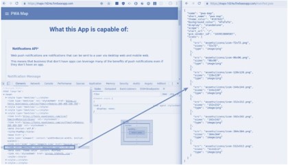 El fichero manifest.json almacena los metadatos asociados a la PWA, por ejemplo el nombre de la aplicación, URL del server, urls de iconos, modo full-screen, splash,…por tanto permite controlar el aspecto de la PWA