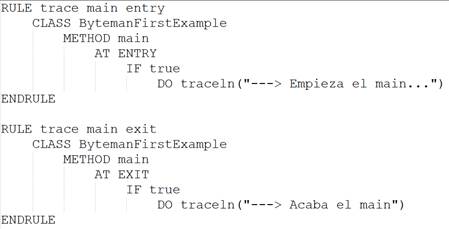 Como se puede ver la regla tiene 2 reglas, una que se ejecuta a la entrada del método main y otra a la salida:
