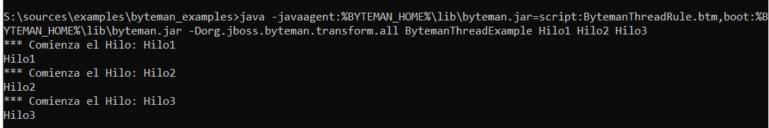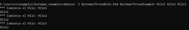 (bmjava -l BytemanThreadRule.btm BytemanThreadExample Hilo1 Hilo2 Hilo3)