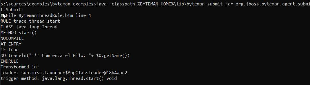 Ahora cargaré la regla definida en el post anterior (BytemanThreadRule.btm)