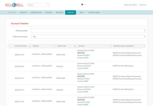 Kill Bill (además de 2 películas de Tarantino, la segunda mi preferida del director de Tennessee) es una plataforma open-source construida en Java para gestionar subscripciones con pagos y facturación.