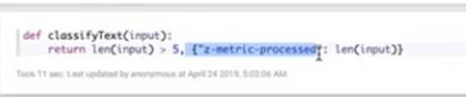 En este caso estoy definiendo un párrafo en el que defino un código de ejemplo, luego lo testeo (de modo que si no se cumple la condición el Notebook no continua la ejecución y finalmente publico el API con un nombre: