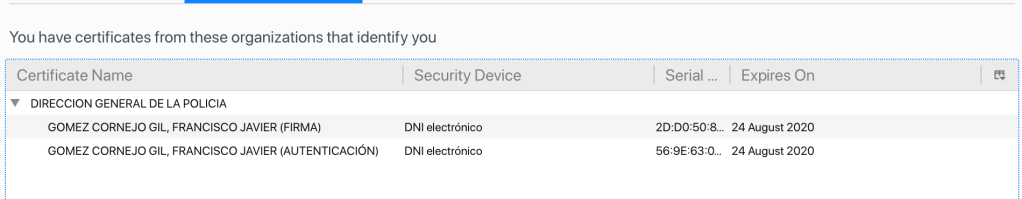 Una vez introducida, en firefox, podremos visualizar los certificados en Preferencias->Privacidad y Seguridad->Ver certificados