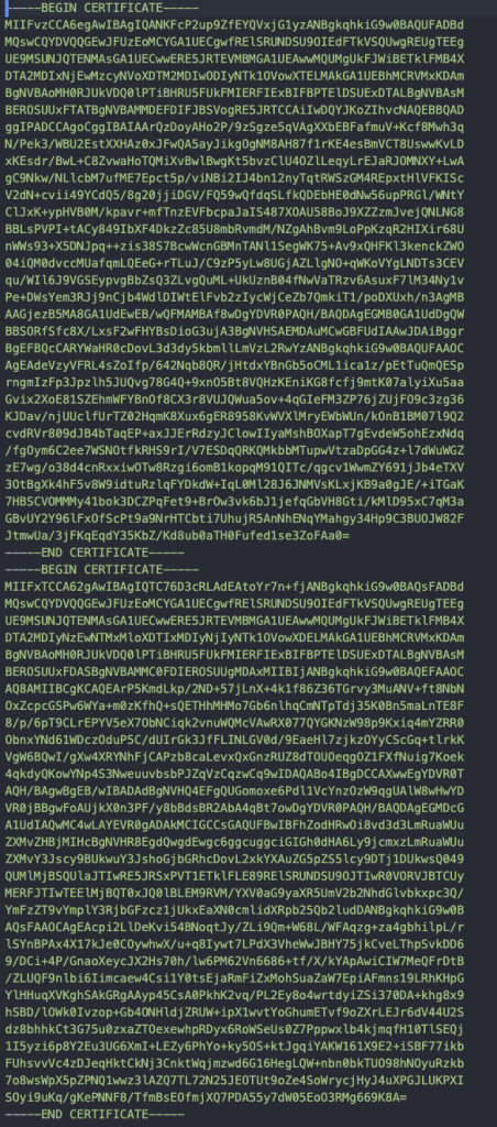 Si obtenemos un error en el paso anterior relacionado con que no puede verificar el issuer, será porque en el fichero CA.pem no tenemos los certificados raíz e intermedio. El fichero CA.pem debería tener esta pinta: